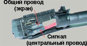 Соответственно, экран должен соединятся с контактом 2, а сигнал с контактом 3.